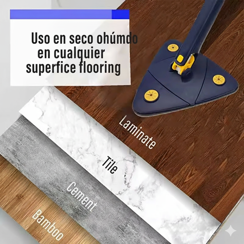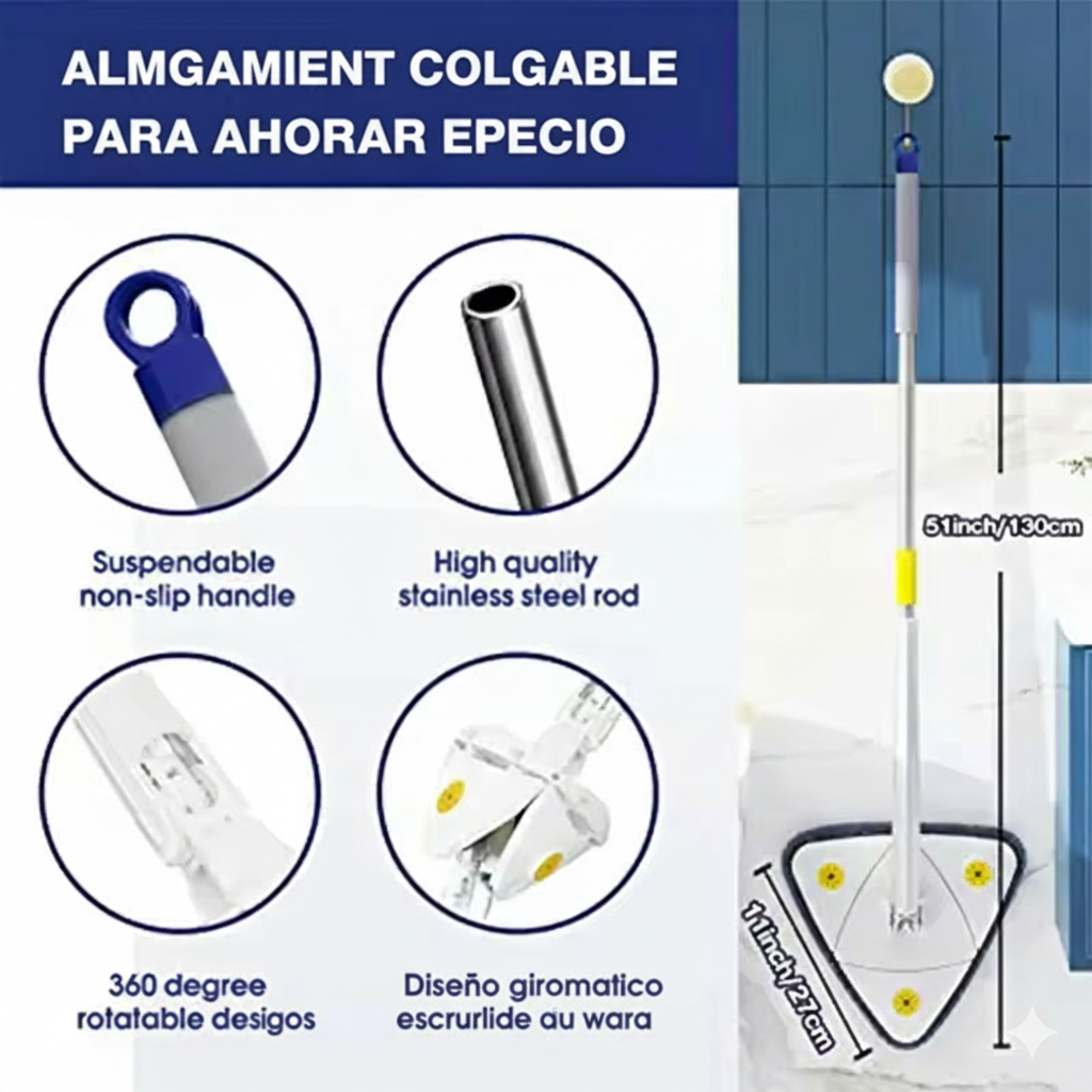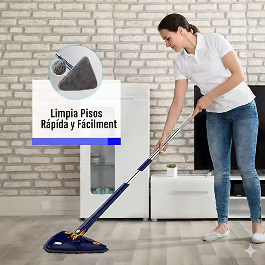 ¡Di adiós a los rincones inaccesibles y a la suciedad persistente! La Mopa Triangular 360° está diseñada para que limpiar deje de ser una pesadilla y se convierta en una tarea rápida, eficaz y sin esfuerzo.
